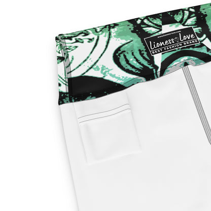 Crafted from 82% polyester and 18% spandex, these leggings feature four-way stretch for maximum flexibility, plus a smooth microfiber yarn that feels incredible against your skin. The raised waistband offers extra support and a flattering fit, while each pair is precision-cut and hand-sewn after printing for long-lasting quality.