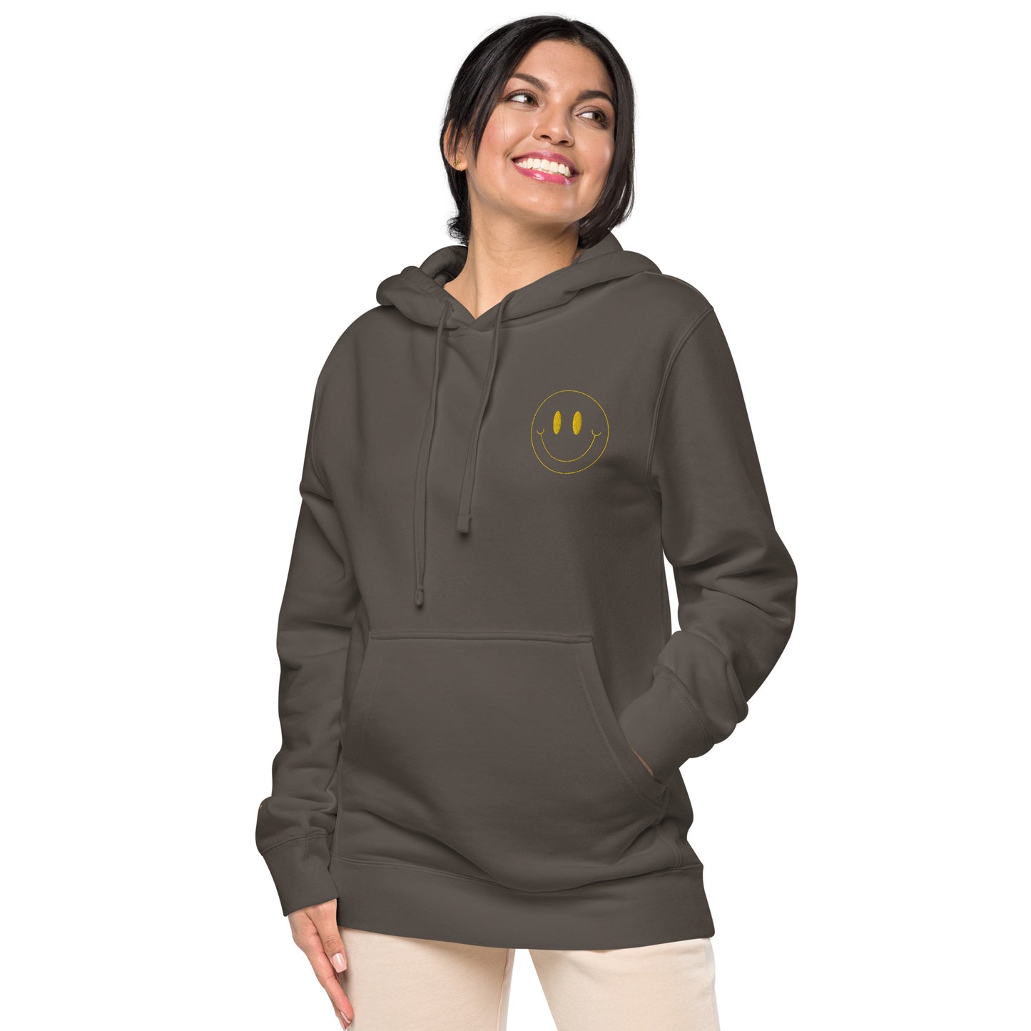 Brighten your wardrobe with our Smiley Face Design Unisex Pigment-Dyed Hoodie. This trendy piece features a vintage, washed-out look, achieved through a unique pigment-dyeing process that ensures each hoodie has its own distinctive shade—making every item truly one-of-a-kind.
