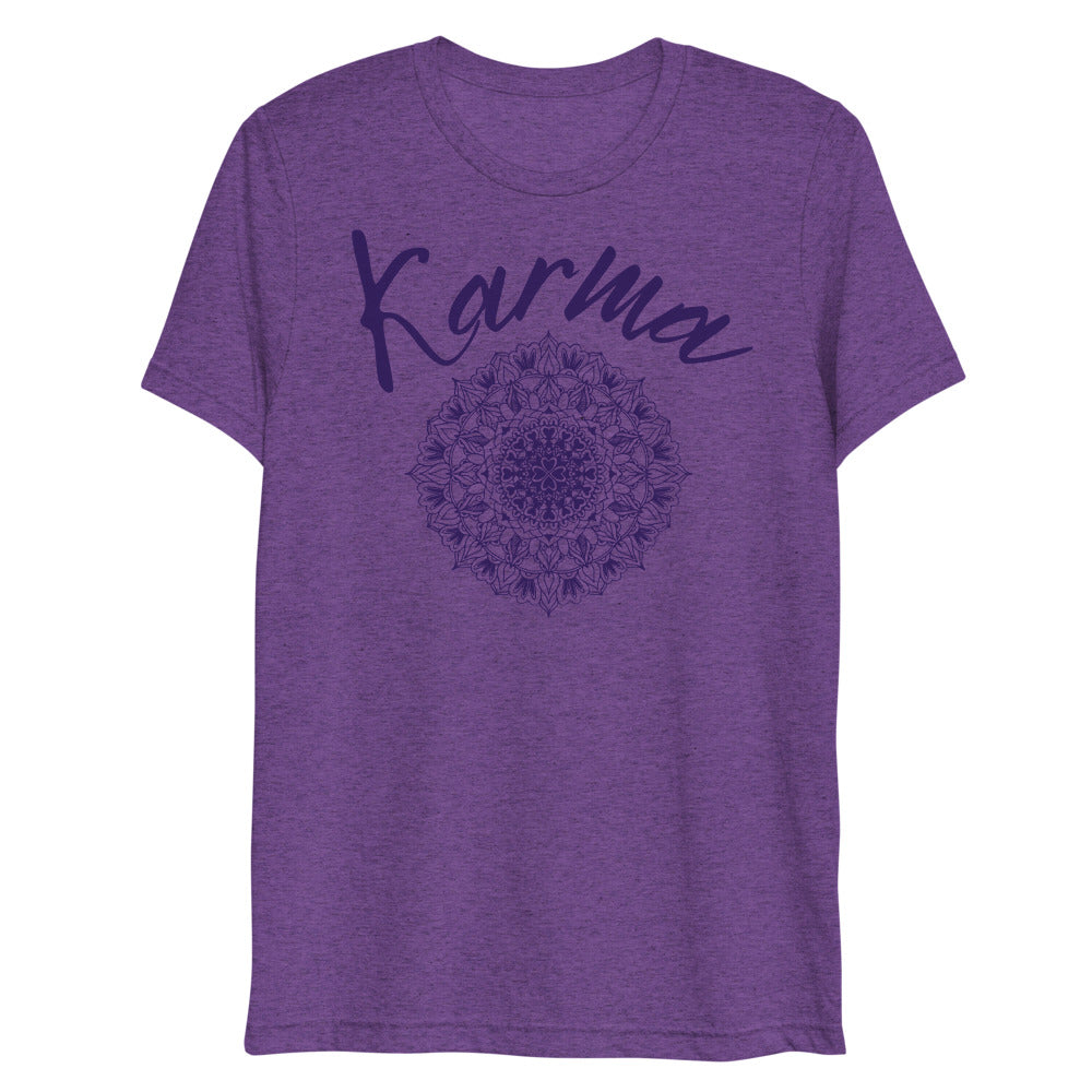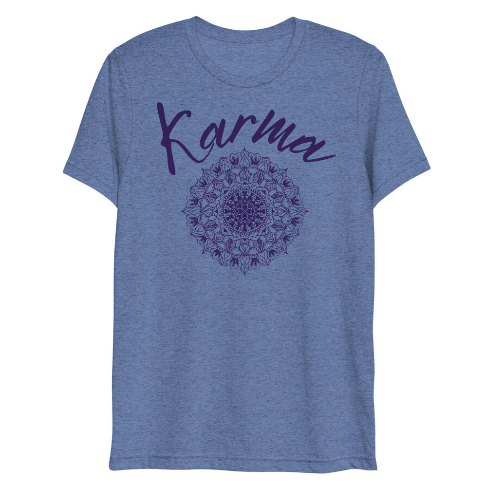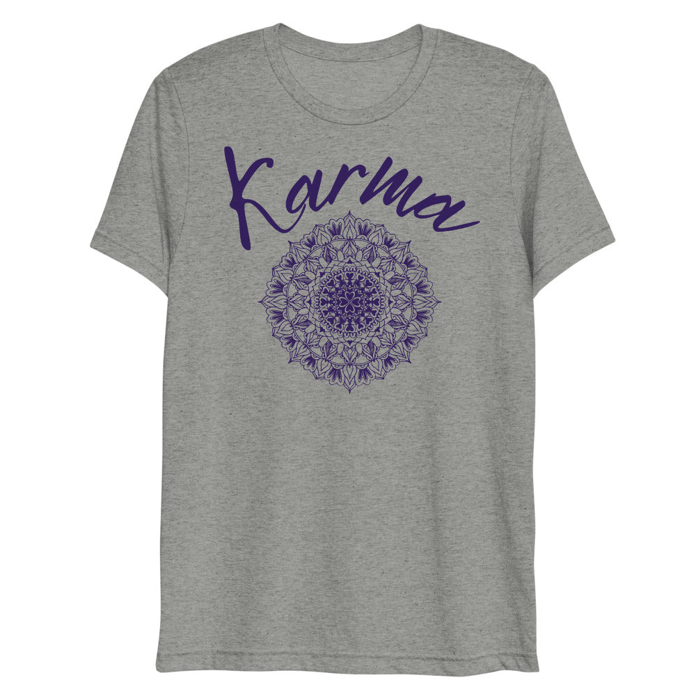 This beautifully designed graphic Karma tee is on a soft to the touch tri-blend fabric which creates a vintage, fitted look. And extreme durability makes this Karma style t-shirt withstand repeated washings and still remain super comfortable.