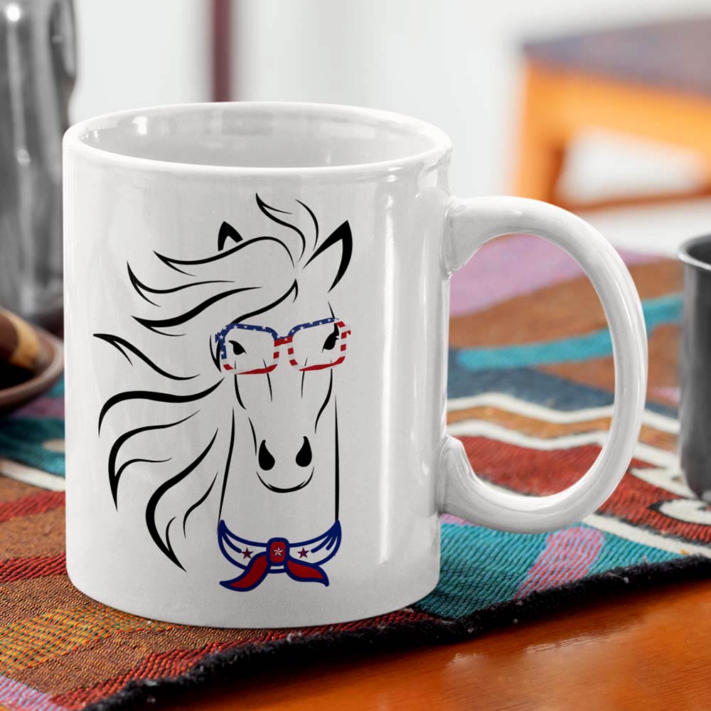 Whether you're drinking your morning coffee, evening tea, hot cocoa or something in between – this Beautiful Horse mug's for you and makes a great gift for horse lovers! It's sturdy and glossy with a vivid print that'll withstand the microwave and dishwasher.