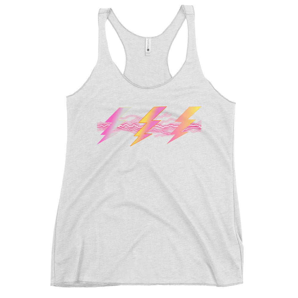 This lightning bolt racerback tank is colorful, soft, lightweight, and form-fitting with a flattering cut and raw edge seams for an trendy edgy touch. This is a stylish and high-quality top that is perfect for a warm day, workout tank, fitness top or pair with a cute jacket to dress it up with jeans, slacks or shorts. Makes a great gift for bestfriend, birthday gift, or a gift for any special occasion for women & teens.